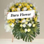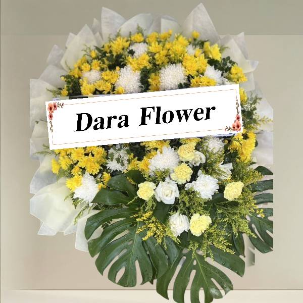 พวงหรีด ดอกไม้สดโทนสีขาวเหลือง