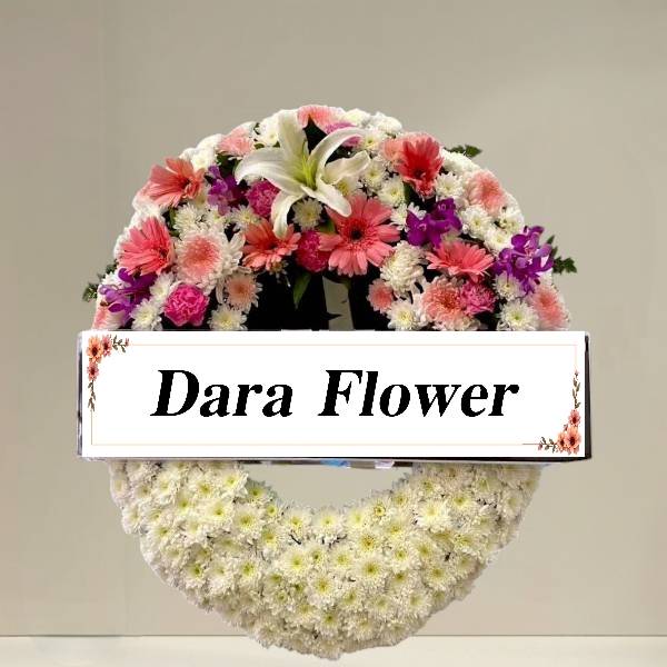 พวงหรีด ดอกไม้สดโทนสีขาวชมพูม่วง